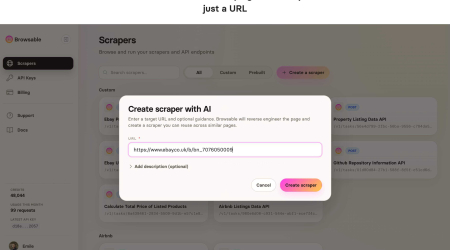 Browsable is an AI web scraper that turns any webpage into a reusable scraping API. Provide a URL and it will analyze the page, determine what data can be extracted, and reverse engineer the structure to generate an API. The generated API works not just for the page you provide, but for any page with the same structure. For example, if you create a scraper for https://youtube.com/@mrbeast, Browsable will generate an API that can scrape any YouTube channel by passing the channel name as a parameter. Many websites contain valuable data that businesses, individuals, and AI agents need, but most do not provide APIs to access it. Browsable solves this by automatically generating APIs for any website, allowing you to download the data you need or integrate it directly into your own applications.