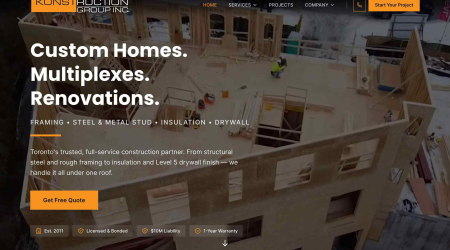 Konstruction Group Inc is a professional construction company based in Toronto, Ontario, specializing in comprehensive building services for residential and commercial projects. With over 15 years of industry experience, the company has established itself as a trusted partner for builders, developers, and homeowners throughout the Greater Toronto Area. Core Services: 1. Rough Framing Services 2. Structural Steel & Welding 3. Insulation Services 4. Drywall Services 5. Engineering Services