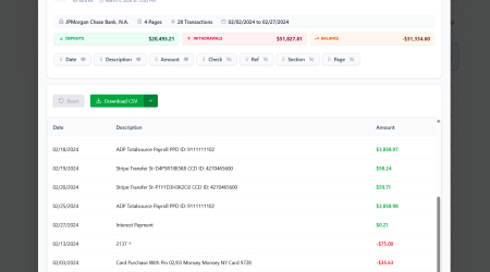 ProcessBankStatement is a secure and fast tool that eliminates manual data entry. Simply upload any PDF bank statement and get a downloadable CSV in seconds. Our smart parser extracts clean, structured data ready for QuickBooks, Excel, or custom analysis. We proudly support statements from major U.S. banks including Chase, Bank of America, Wells Fargo, and more. Your data is always encrypted, and you have full control to delete your files at any time.