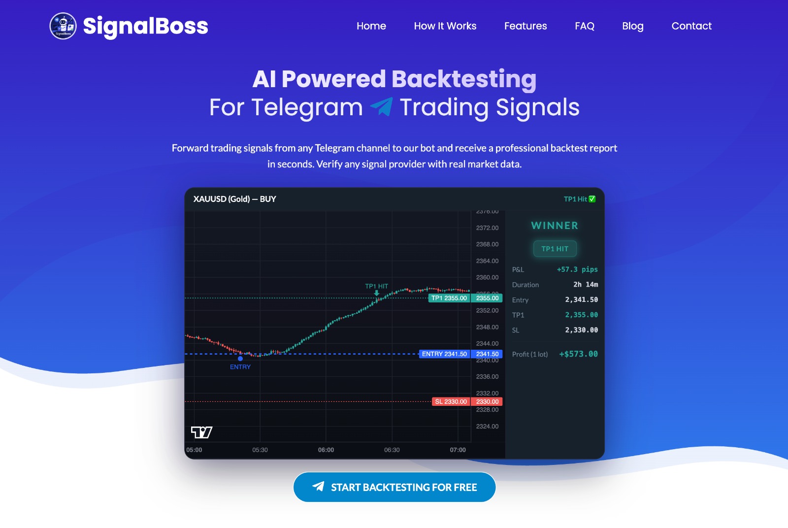 The most trusted Telegram signal backtester. Forward any trading signal to our AI bot and verify real profitability in 30 seconds. Used by 1000+ traders to avoid scams.